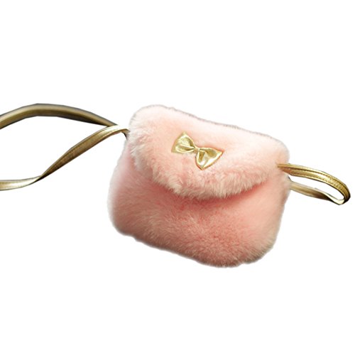 QIAONAI 可愛い キッズ ショルダーバッグ ポシェット バッグ ふわふわ 斜め掛けカバン リボン付き 子供 超可愛い 女の子 誕生日 プレゼント プリンセスに変身 (ストロベリーピンク)