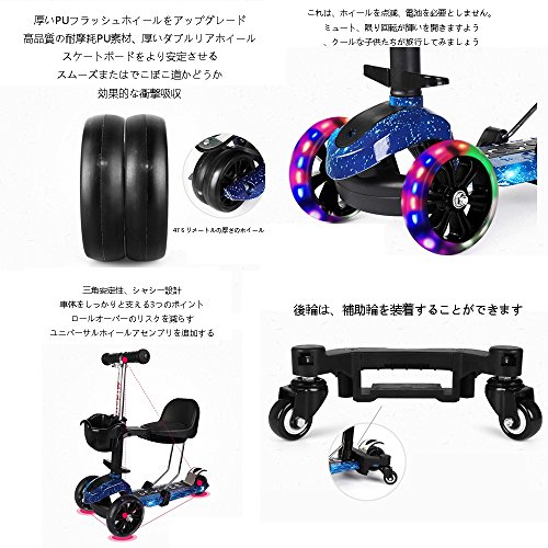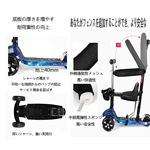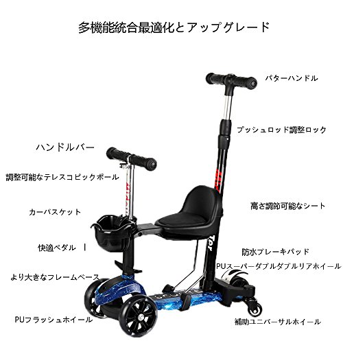 - 1.多機能スクーター、アップグレードされた2輪の後輪、厚いシャシー、スーパーロードベアリング、フルホイールのフラッシュ。様々なモードを自由に切り替えることができます:カート、スクーターは切り替えが可能です。1-10歳のお子様に適しています。