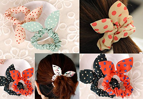 Qingsun 5個かわいい女の子ウサギ耳ヘアタイバンドロープポニーテールホルダー 6cm PRN144637ZFZP58