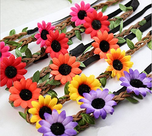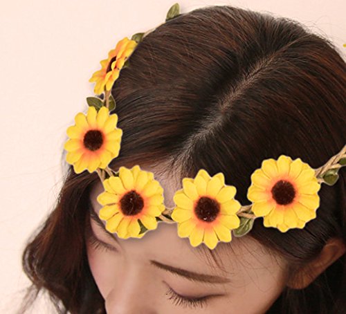 QingsunガールズファッションボヘミアンフラワークラウンSunflowerヘッドバンドヘアバンドベビーヘアアクセサリ イエロー 15393183921