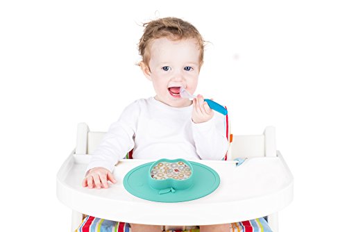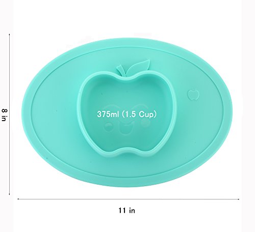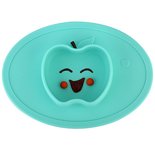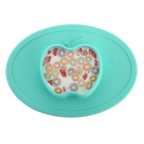 LONGDA シリコン製 お食事用ミニマット 赤ちゃん 幼児適用 BPAフリー FDA食品級 滑り止めランチョンマット 丸洗い・電子レンズ対応可能 (ミニ - リンゴ, シアン - リンゴ)