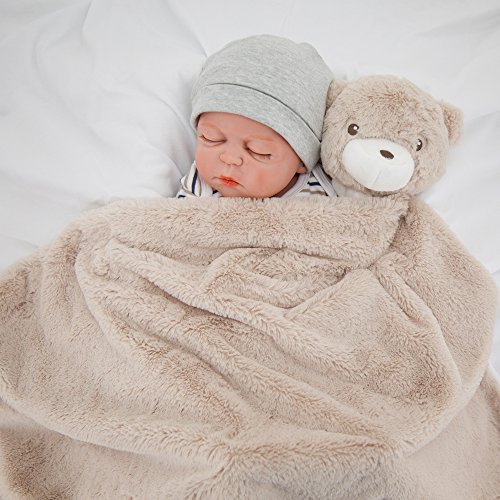 Kavkasベビー毛布 男 ブランケット こども用 お昼寝 新生児 出産のお祝 保温性 ふわふわ 76x76cm膝掛け かわいいぬいぐ (カーキクマ)