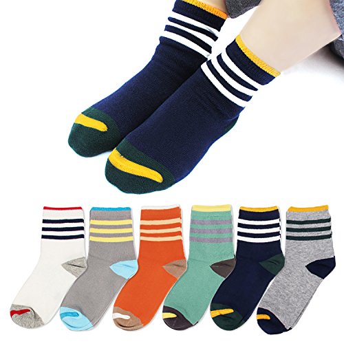 ボーイズ 子供 靴下 純綿 100% ストライプ ソックス マルチカラー キッズ 6足 セット 四季用 通販 …
