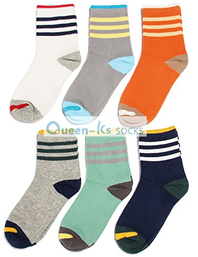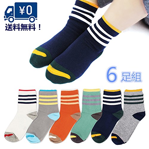 【Queen-ks】送料無料 通年用 ソックス キッズ 靴下 キッズ 男の子 女の子 スポーツ 綿100%靴下 クルーソックス ボーダー 靴下 カラフル おしゃれ 締め付けない 吸湿速乾 抗菌・防臭加工 ギフト 贈り物 (M)