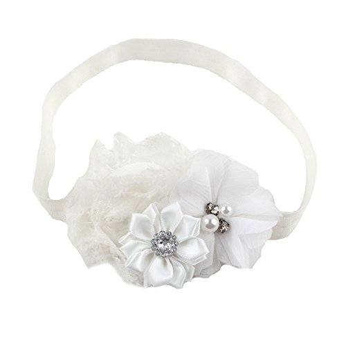 queengirlsベビー女の子シックなフラワーヘッドバンドベビーヘアリボン カラー: ホワイト