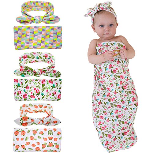 Quest Sweet新生児おくるみ、受信毛布、ブランケット&ヘアバンドセット( 1???3パック) M ベージュ