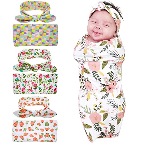 Gellwhu赤ちゃんブランケット 新生児 おくるみ毛布 ビーニー帽子 3セット