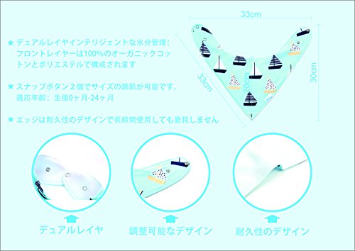 - 赤ちゃん ビブ お食事エプロン バンダナ型 風 カワイイ、よだれを完全に防御、赤ちゃんの服を綺麗なままに 2,素材:表:100%コットン、裏:スーパー吸水力のポリエステルと羊毛。100%天然素材 ご安心使用ください
