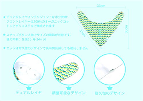 Quest Sweet ベビー スタイ ビブ 柔らかい 綿100% 2層タイプ スナップ 三角タイプ サイズ調整可能