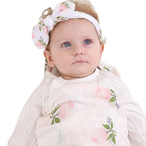 - おくるみ ひざ掛け ブランケット 綿100% ガーゼ 生地 授乳ケープ プレイマット。 ヘアバンド ベビー 新生児 赤ちゃん ヘッドバンド 髪飾り セット コットンリボン ヘアアクセサリー