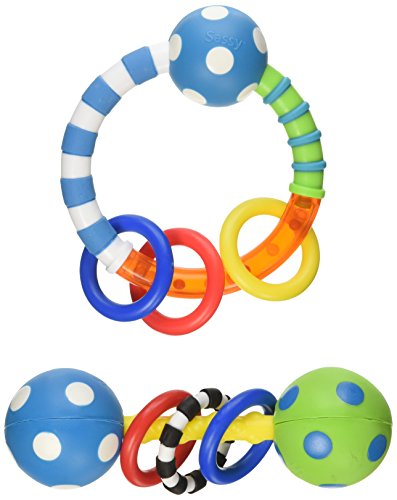 Two great products for grasping and touching;Ring rattle provides a variety of texture and color to stimulate vision and touch;Barbell rattle contains floating beads that provide stimulation for hearing;Large areas to mouth and grasp;0+ Months