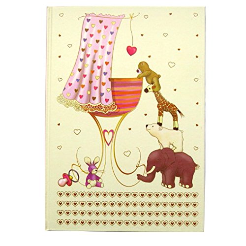 Beautifully designed and well made A4 Casebound Notebook by Quire;Comes with a light cream and very thick front and back cover with various illustrated cute baby items forming the design.;Total of 120 plain pages on 90gsm Quality brilliant white paper and is case bound with lined coloured end papers on the inside.;Thread sewn on the long edge (297mm) and also includes a bound in silk pink ribbon for easy page identification and access. Comes complete in its own plastic wrap.;If you after something special in a baby book or to give as a gift then this is your item. Very durable and long lasting. Great to use as a scrapbook and for keeping all important notes, attaching pictures, items relating to your beautiful new born.