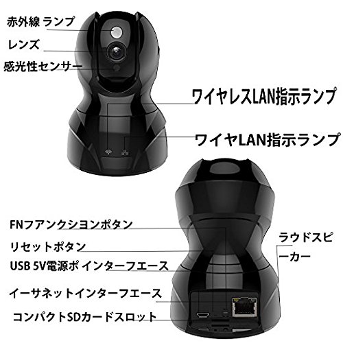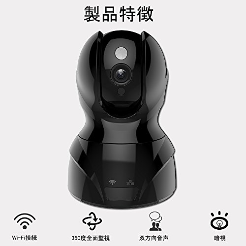 ネットワークカメラ1080P 200万画素 双方向音声 動体検知 暗視撮影 WIFI機能 小型監視カメラ 老人 子供 猫犬ペット見守り(200万画素,ブラック)