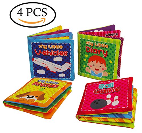 Quner ベビー用品 赤ちゃん あそびえほん 4本セット子供絵本 知育玩具 音が鳴る 学習多機能 破れない 英語 おでかけ布えほん ソフトブック 布のおもちゃ