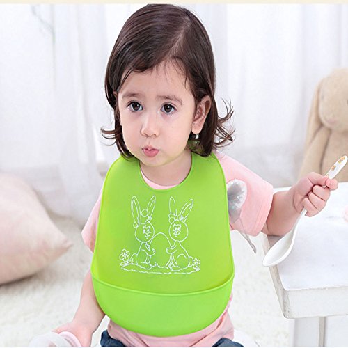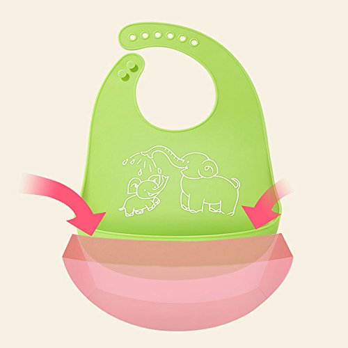 よだれ掛け ベビー 赤ちゃん 幼児 エプロン ビブ 可愛い シリコン製 食事 片付け size フリーサイズ (グリーン)