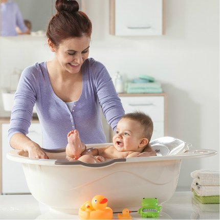 QvQ ベビーバス 0〜5歳の赤ちゃん用 座ると寝る  高品質 バスボード付き (クリーム色)