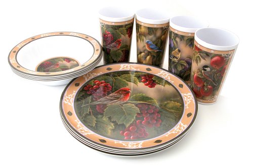 Motorhead Products Wild Wings Gift Boxed 12-Piece Melamine Tableware Sets, Songbird Series by R&D Enterprises/Motorhead Products