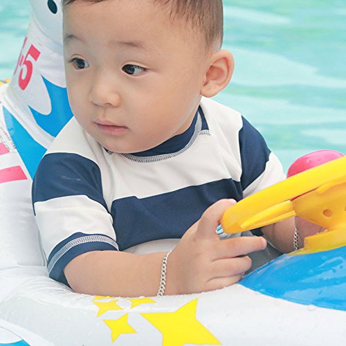 子供水着 男の子 ストライプ水着 子供水着 ボーダーUVラッシュガードパンツセット (XL(105cm-115), ダークーブルー)