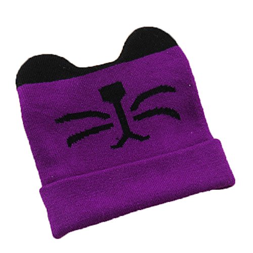 新生児帽子 ベビー帽子 防寒 可愛い キッズ帽子毛糸 (パープル)