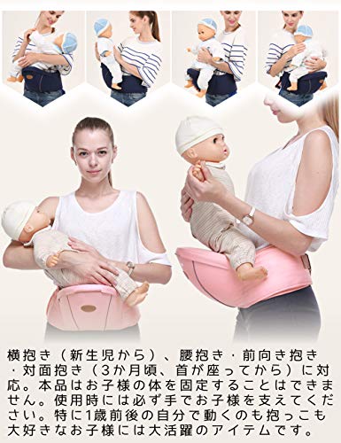- 横抱き(新生児から)、腰抱き・前向き抱き・対面抱き(3か月頃、首が座ってから)に対応。本品はお子様の体を固定することはできません。使用時には必ず手でお子様を支えてください。特に1歳前後の自分で動くのも抱っこも大好きなお子様には大活躍のアイテムです。