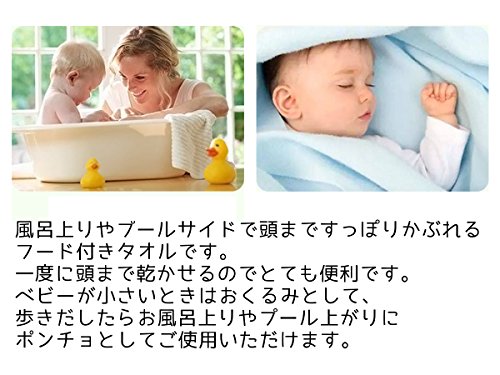 - ベビーが小さいときはおくるみとして、歩きだしたらお風呂上りやプール上がりにポンチョとしてご使用いただけます。