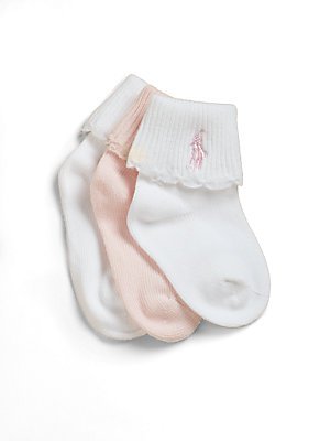 【並行輸入】RALPH LAUREN(ラルフローレン) ベビー二つ折りソックス くつ下 3足セット 6~12m(9cm)