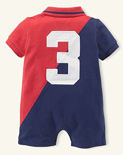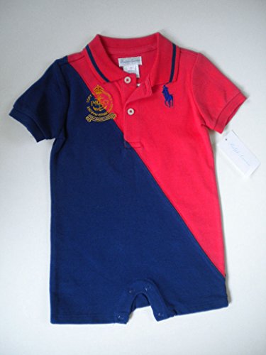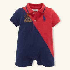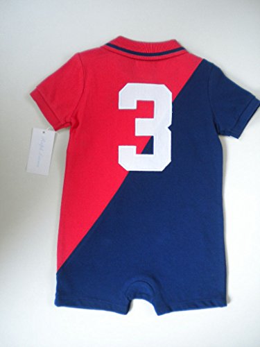 人気新作のポロシャツタイプの半袖コンビです。 鹿の子素材。 前2つボタン、股下4つホック。 ボタンにはRALPH LAURENの刻印入り。 胸元に紺色のビッグポニー刺繍とラルフエンブレムの刺繍。 背中に3の刺繍。 人気のバイカラー。 めちゃめちゃかわいいですね~。。 1枚は欲しい!!ラルフローレンのベビー服です。 ギフトや出産祝いにもお勧めです。♪ ☆素材:綿100%(鹿の子素材) ☆色:マウイレッド*ネイビー ☆サイズ:9m(70サイズ)12m(75~80サイズ)