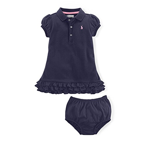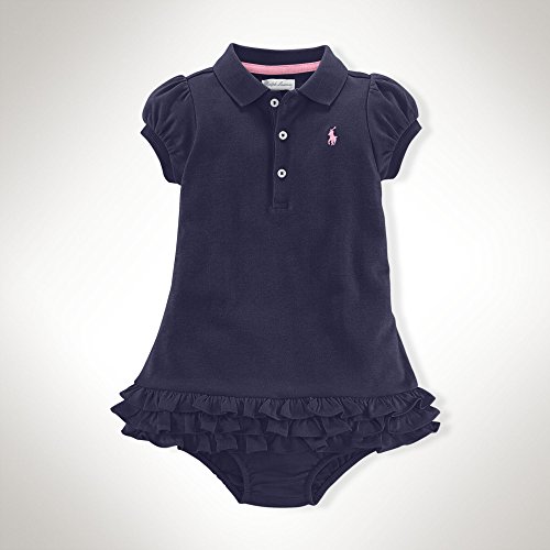ラルフローレン人気のワンピースです。 胸元にピンク色のポロマーク刺繍。 前3つボタン。 ボタンにはRALPH LAURENの刻印入り。 スムースコットン素材。 上質で肌触りのいい素材です。 同じ素材のブルマが付きます。 裾のラッフルフリルとってもキュートです。 さすがラルフ!やっぱりかわいいですねー。 1枚は欲しい~マストアイテムですね。 出産祝いやギフトにも喜ばれます。 ☆素材:綿100% ☆色:Navy ☆サイズ:24m(90サイズ)