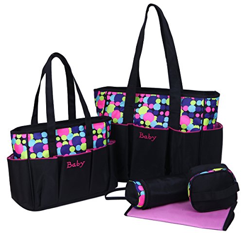 RAYMARC マザーズバッグ 大容量 5点 セット ショルダーバッグ トートバッグ A4 大きめ 撥水 ピンク ドット 05