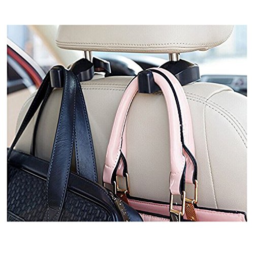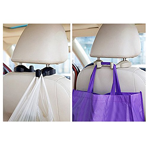 1, Car back seat hook hanger, great idea for carry bag, clothes, umbrella, groceries, etc in your car;;2, Made of high quality ABS, durable and environmental;;3, Side opening design, easy installation and no need disassemble your headrest;;4, Rotatable and it can be hidden when you don't use it;;5, Comes with 2 pcs in the package box.