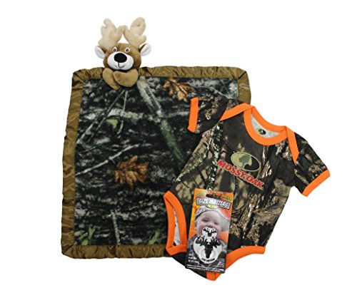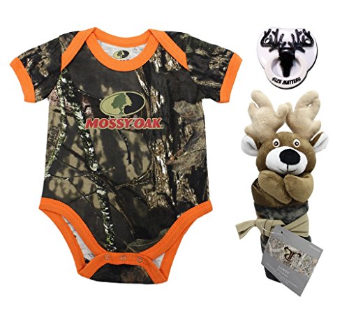 このギフトセットは、Mossy Oak Camo幼児ボディスーツ、True Timber隠し鹿Blankieとビリーボブサイズmattersおしゃぶり。お気に入りのハンティングの友へのプレゼントに。