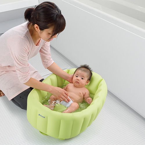 グリーン(GR)の単品販売となります。 商品情報 対象月齢:新生児~3ヵ月頃まで、適用身長:60cmまで サイズ/68×47×29H(cm) ※空気の量により多少異なります。 容量/25L(満水時)、10L(MAXライン位置) 材質/塩化ビニル樹脂(食品衛生法対応可塑剤使用) 赤ちゃんにやさしい やわらかクッションのベビーバス! 新米パパ&ママもラクチン! バスネットを使わなくてもOK。