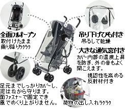 カバーのみの販売となります。 サイズ: 44×71×83H(cm) 成分・材質: ポリエチレン 重量: 300g どんなデザインのベビーカーにも合うシンプルなレインカバー。 足元までしっかりカバー。 乗せ降ろししやすい全面フルオープン。 大きい通気窓で蒸れを防止。 背面ファスナーで荷物の出し入れもラクラク。 収納ポーチ付き。 フリーサイズ。 背面ベビーカー専用。 日除けが大きいベビーカー、ベビーバギーにおすすめ。