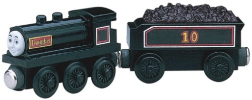 From the popular Thomas the Tank Engine book series and television's Shining Time Station, based on the Railway Series by Rev.W.Awdry, comes Douglas, one of the Scottish Twin steam engines.With a hardwood body, shiny black and maroon paint, a three-dimensional face, and a magnetically coupled 7.6cm coal car, Douglas is ready to transport cargo.Six-wheeled Douglas can pull several freight cars along with his own coal car.Wheel axles measure 2.5cm across and fit standard Brio wooden train tracks, and similar 1- to 3.8cm grooved train tracks.Train buffs young and old will enjoy recreating authentic railway scenes as they collect these wonderfully crafted, classic train cars, bridges, ramps, tunnels, stations, and more from the Thomas the Tank Engine & Friends Wooden Railway System.--Kathryn Gustafson