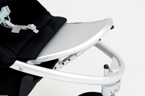 ![]() | フットレスト 月齢が小さい赤ちゃんのズレ落ち防止のフットレストは、前部を上にあげて使用。成長後も調整できる。 |