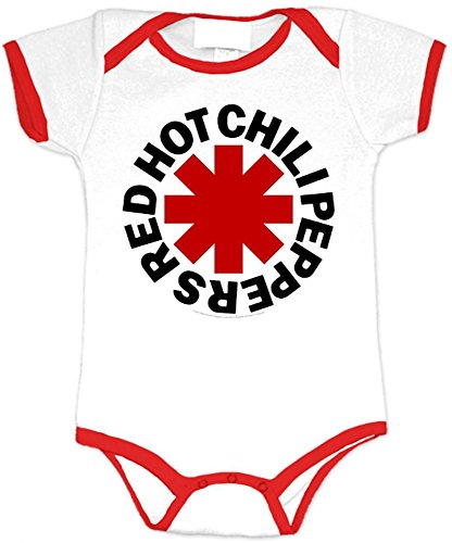 レッド ホットチリペッパーズのかわいいロンパース <ロンパース・サイズ> 0~6mo - Sサイズ 6~12mo - Mサイズ 12~18mo - Lサイズ 18~24mo - XLサイズ