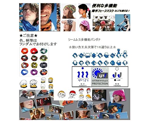 - 多機能バンダナ(色柄はランダムでお付けします) : 伸縮性があるので使い方多数(約23cm × 約48cm)