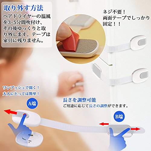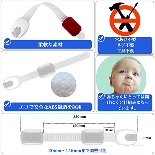 - 【赤ちゃんのいたずら防止&地震対策】クロゼット、キャビネット、トイレ、食器棚や冷蔵庫などの引き出し、開き戸、引き戸をロックして、お子様のイタズラや思いがけない事故、ケガなどを防ぎます。地震対策にもオススメです!