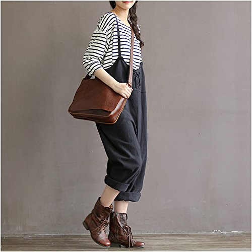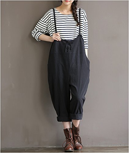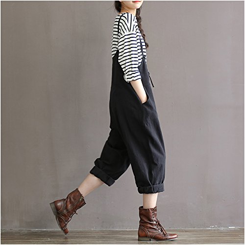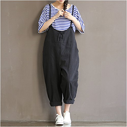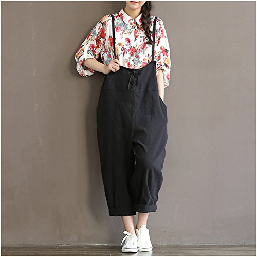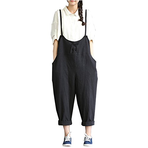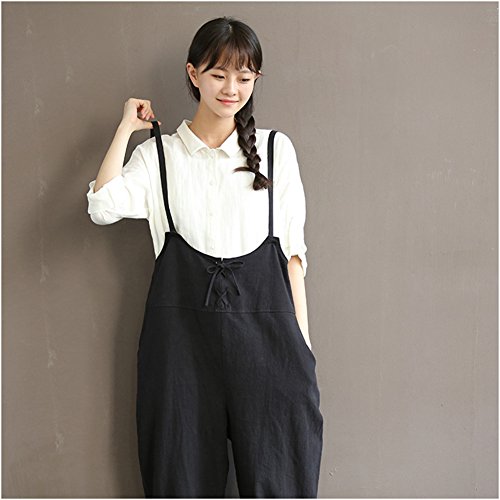 REILI サロペット オールインワン レディース 無地 シンプル ロールアップ カジュアル 旅行 オーバーオール 綿 麻