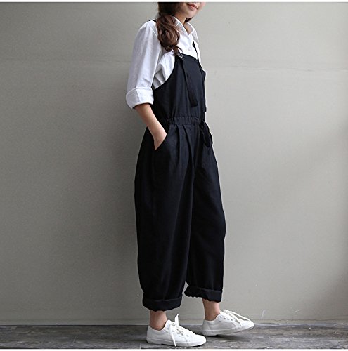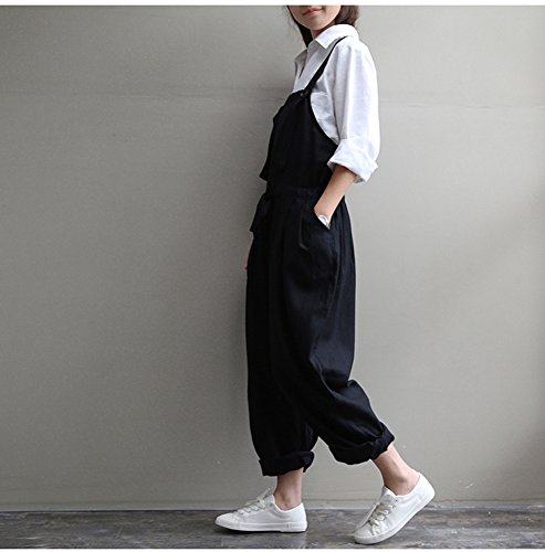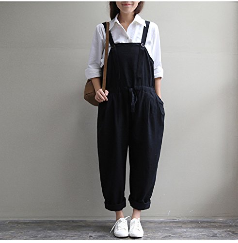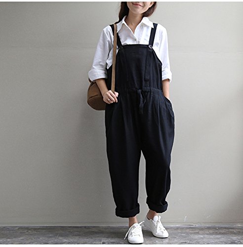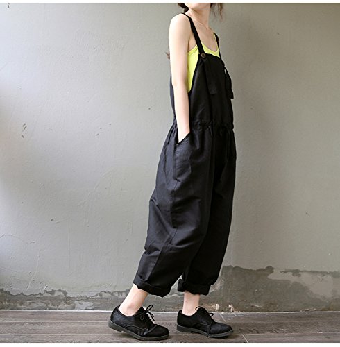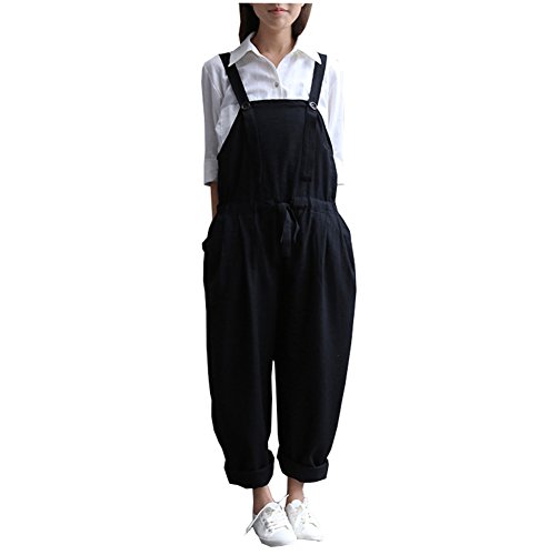 REILI サロペット オーバーオール レディース オールインワン 大きいサイズ ブラック 無地 シンプル カジュアル