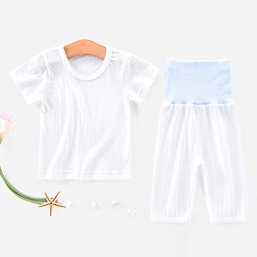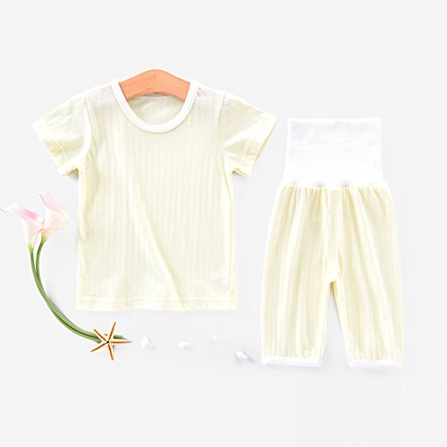 REILI パジャマ 子供 ベビー 上下セット 4点セット 2セット ルームウェア 半袖Tシャツ 七分丈パンツ 綿 ハイウェスト 男女兼用 0~3歳 春 夏 秋 (100, ホワイト+イエロー)