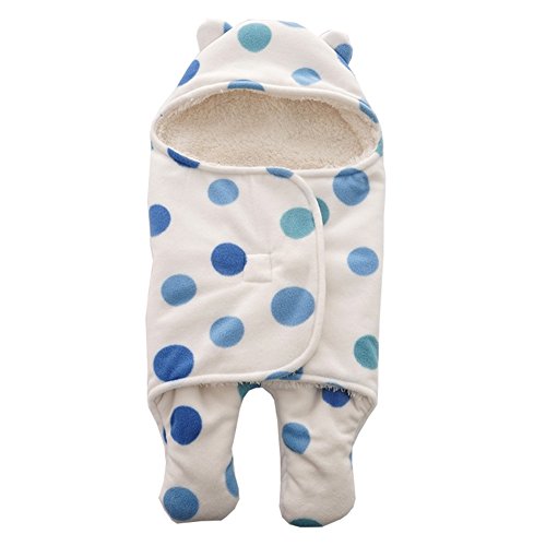 REILI おくるみ 赤ちゃん ベビー 新生児 春 秋 冬 ふわふわ 出産祝い 男の子 女の子 耳付き あったか フード付き 可愛い プレゼント 星柄 (S, 青ドット)