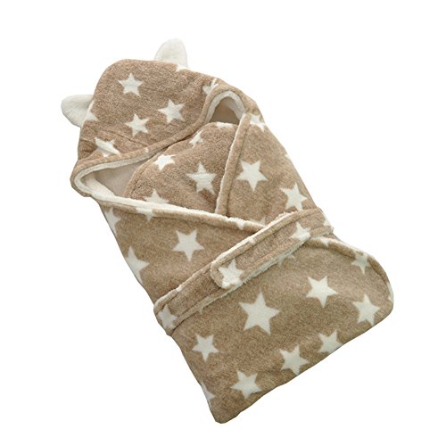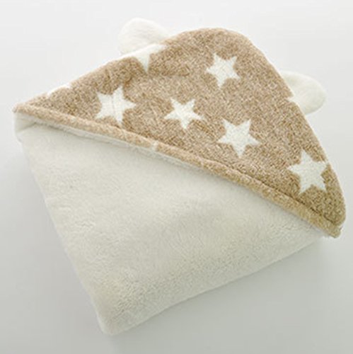 REILI キッズ おくるみ 子供 新生児 赤ちゃん 春 秋 冬 ふわふわ 出産祝い フード付き コーラルフリース 星側 0~12ヶ月 可愛い (ベージュ)
