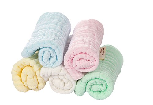 REILI ベビーハンカチ 6重ガーゼ ガーゼハンカチ 赤ちゃんタオル 柔らかい肌触り 新生児ハンカチ 5点セット 5色 洗える