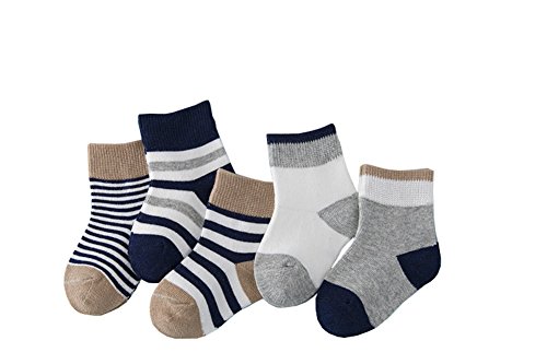 REILI キッズソックス 5足セット ベビー 子供 可愛い 赤ちゃん靴下 ボーダー 綿 防臭 新生児 プレゼント 祝い 男の子 女の子 秋 (S, ダークブール)
