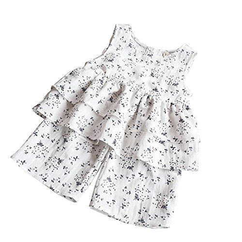 REILI 上下セット 子供 女の子 タンクトップ&パンツ 2点セット 夏 カジュアル ソフト 花柄 袖なし 重ね 可愛い