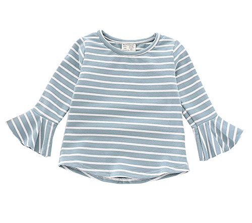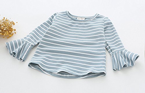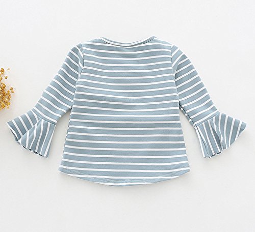 REILI 子供服 長袖Tシャツ ボーダー 女の子 ブラウス キッズ 秋 夏 春 コットン 可愛い シンプル 1~3歳 80~100cm キッズ長袖シャツ (86, ブルー)