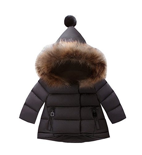 REILI ベビー ダウンコート フード付き 冬 防寒服 赤ちゃん 中綿 厚手 暖かい 男女兼用 可愛い ダウンジャケット (120, ブラック)
