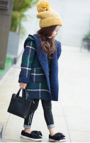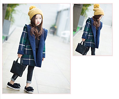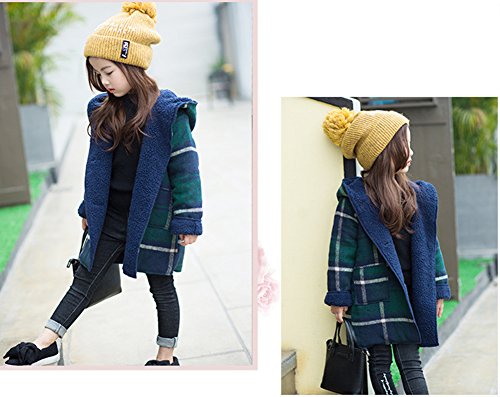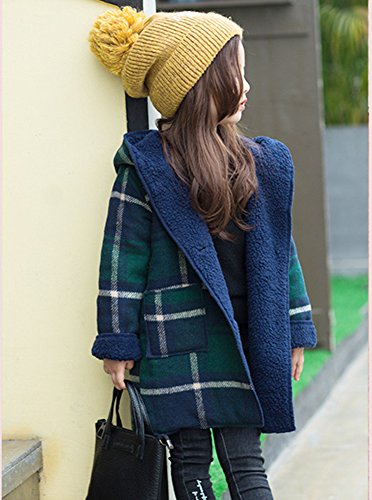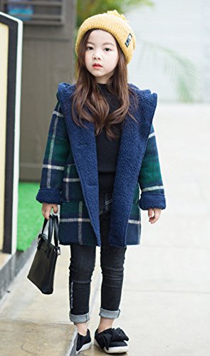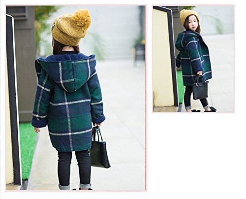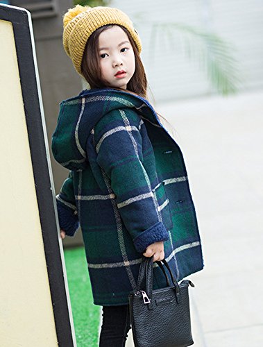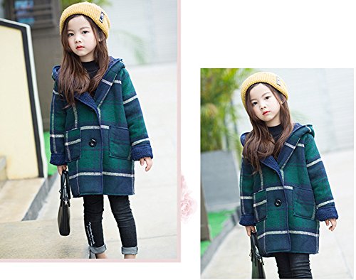 REILI コート キッズ 秋冬 子供服 女の子 フード付き チェック柄 可愛い ガールズ アウター 防寒 (グリーン, 120)