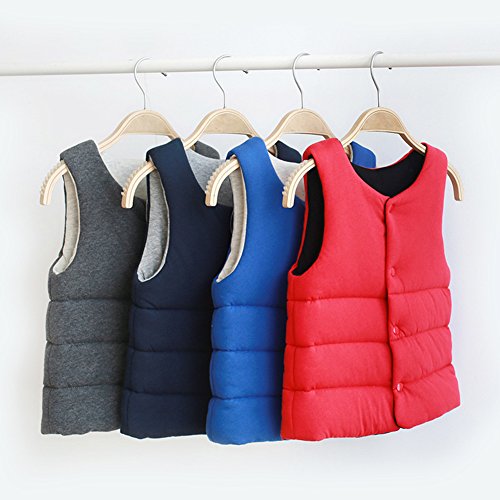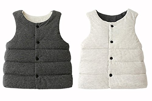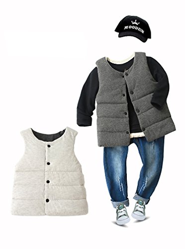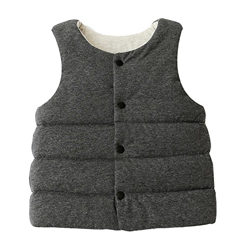 REILI ベスト ベビー 秋冬 コットン キッズ 男女兼用 無地 シンプル 女の子 男の子 綿ベスト (グレー, 90)